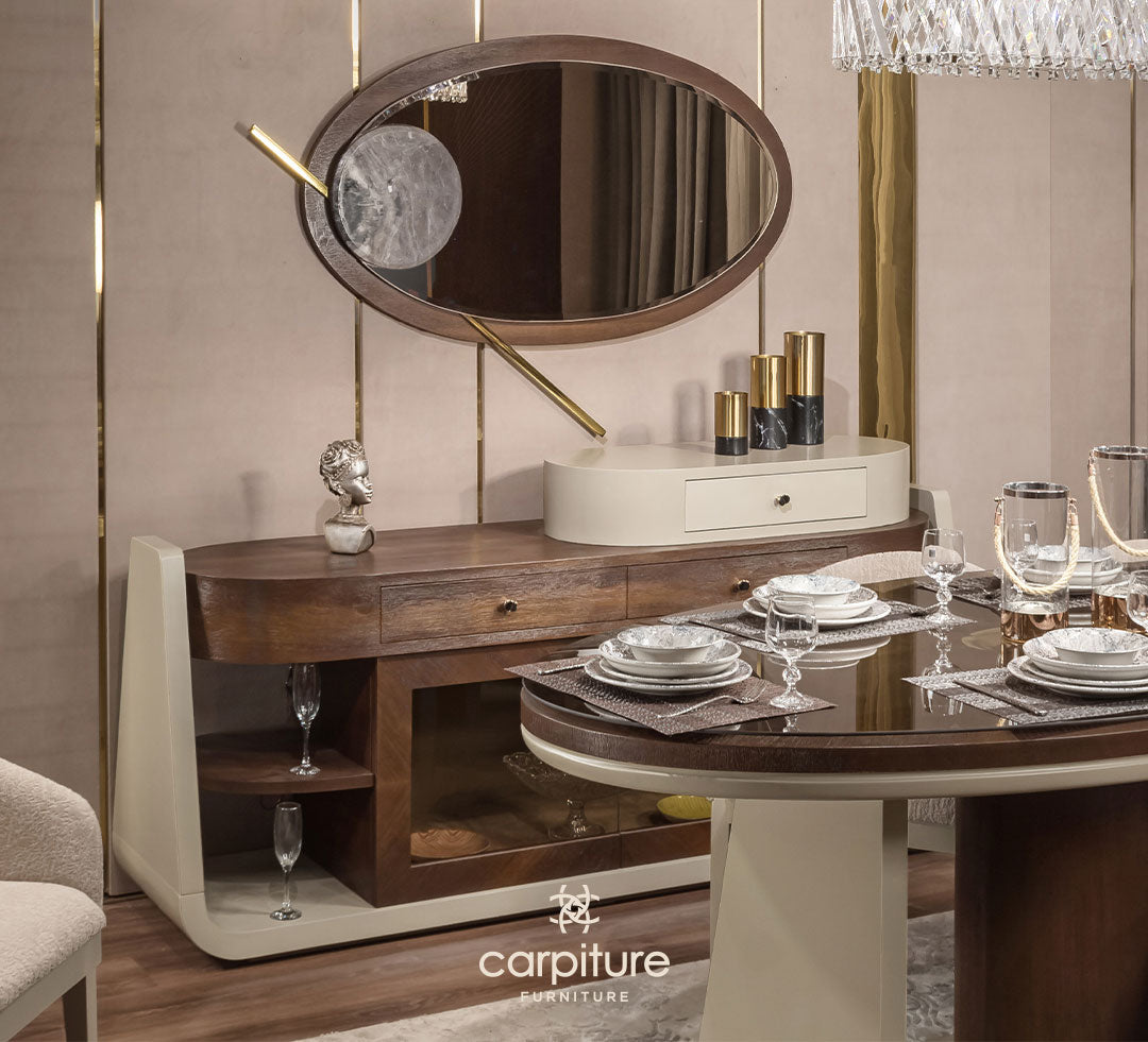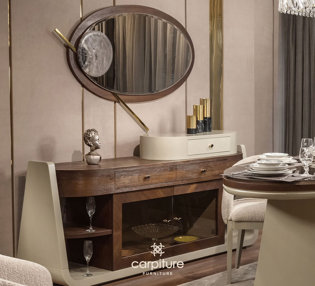 بوفيه +ترابيزة +6 كراسي + بوفيه بالمرايات