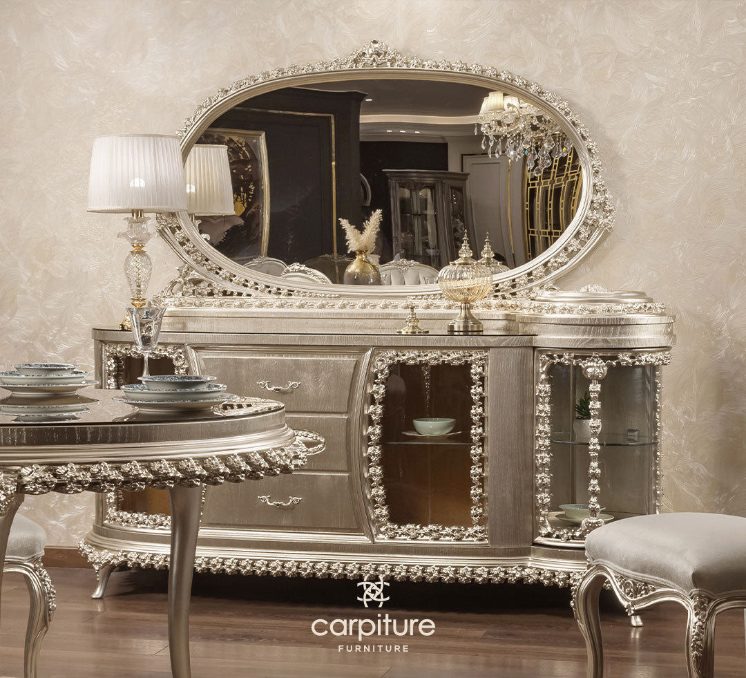 ترابيزة + 6كراسي + بوفيه بالمرايات + نيش