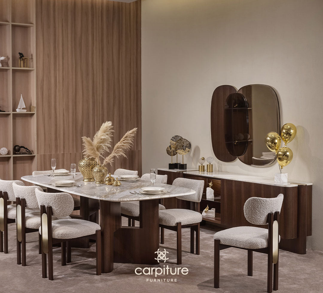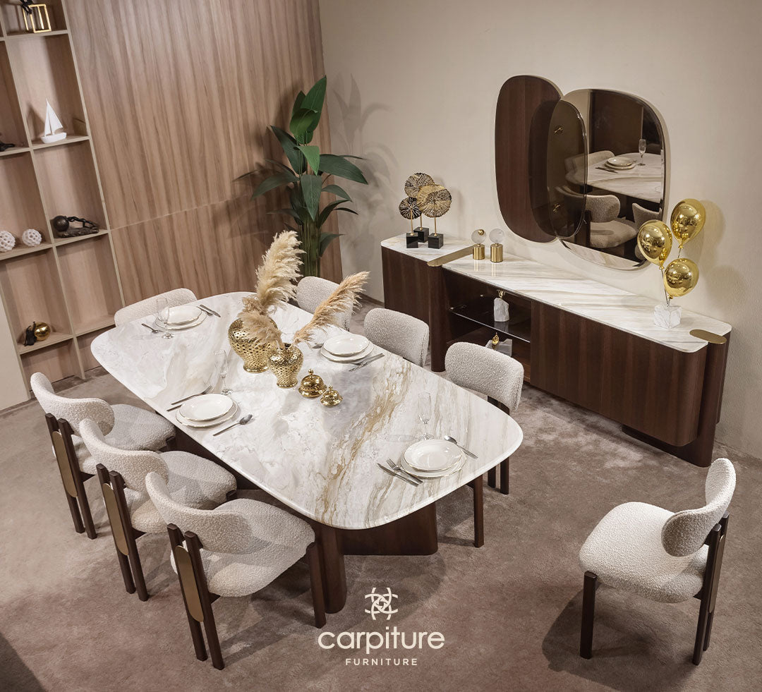 طاولة + 8 كراسي + بوفيه مع مرايا