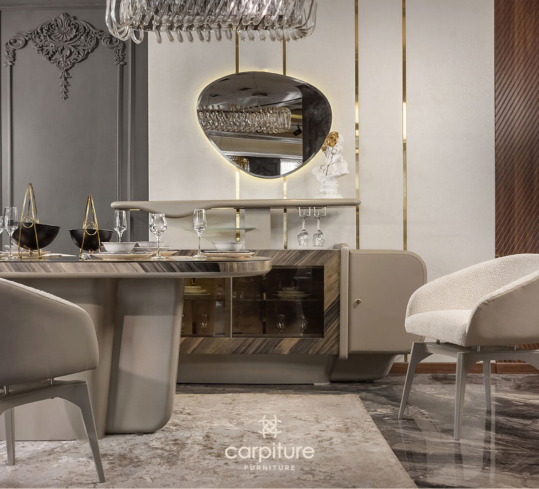 ترابيزة + 6 كراسي + بوفية بالمرايا